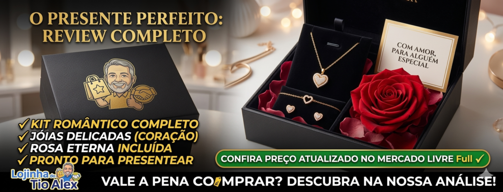 Se você está procurando um presente romântico, elegante e acessível, a Caixa de Presente com Colar Feminino de Coração e Rosas é uma das opções mais populares em marketplaces.